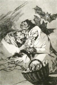 Le petit peuple n’est pas épargné par ce réquisitoire : il est montré ignare, crédule, superstitieux, parfois brutal, voyant le diable à tous les coins de rue et fantasmant de dérisoires conspirations de sorcières et de démons. Cette transposition de la critique sociale dans le registre du rêve et du grotesque n’a pas suffi à faire passer un discours trop incisif pour son époque : très vite après leur publication, les planches ont dû être retirées de la vente pour éviter à Goya des démêlés du côté de la cour ou, pire encore, du redoutable tribunal d’inquisition.