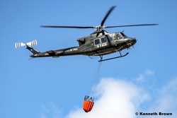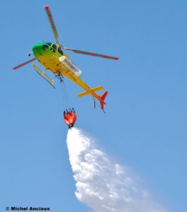 L’Airbus Helicopters AS350 Écureuil est équipé d’un Bambi Bucket de 900 litres.