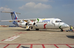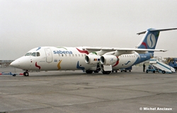 Ce British Aerospace Avro RJ100 portant l’immatriculation OO-DWD fut livré en avril 1998 à la Sabena Il portait les couleurs célébrant le 75e anniversaire de Sabena.