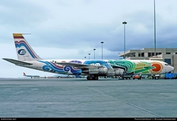 Cet avion portait une livrée spéciale ornée de motifs, tels que des baleines et des dauphins, se rapportant au thème de l’océan. L’idée étant de célébrer l’environnement marin.
