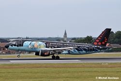 Le troisième portait une livrée unique aux couleurs des Schtroumpfs, afin de célébrer cette bande dessinée belge de renom. Dévoilé en 2018 il est à ce jour toujours en service sur les lignes de Brussels Airlines.
