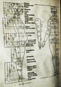Après le chapitre maquillage, l’exposition tente de cerner l’idéal de beauté de la Renaissance en se penchant sur son extrême opposé : la laideur. On retrouve sans surprise comme critères de laideur la vieillesse, vue comme une disgrâce, la maladie (nanisme, femmes à barbe, etc.), et, de façon générale, toute asymétrie ou manquement aux prescriptions canoniques dans le corps et le visage. Les faces difformes et grimaçantes que Léonard de Vinci s’était attaché à dessiner en plus de ses autres travaux sont emblématiques à ce titre et seront largement imitées, retravaillées et réinterprétées en sens divers par ses successeurs. On voit aux murs des Beaux-Arts un exemplaire original de Vinci et un large choix exposant cette descendance (jusqu’à un fou tenant une cuiller, par Quentin Metsys, beaucoup plus loin dans le parcours). Cela permet de constater au passage combien tout ce à quoi s’attaquait Léonard de Vinci s’est montré fertile, même lorsqu’il s’agissait de recherches, voire de simples amusements, dans des domaines très périphériques comme la caricature.